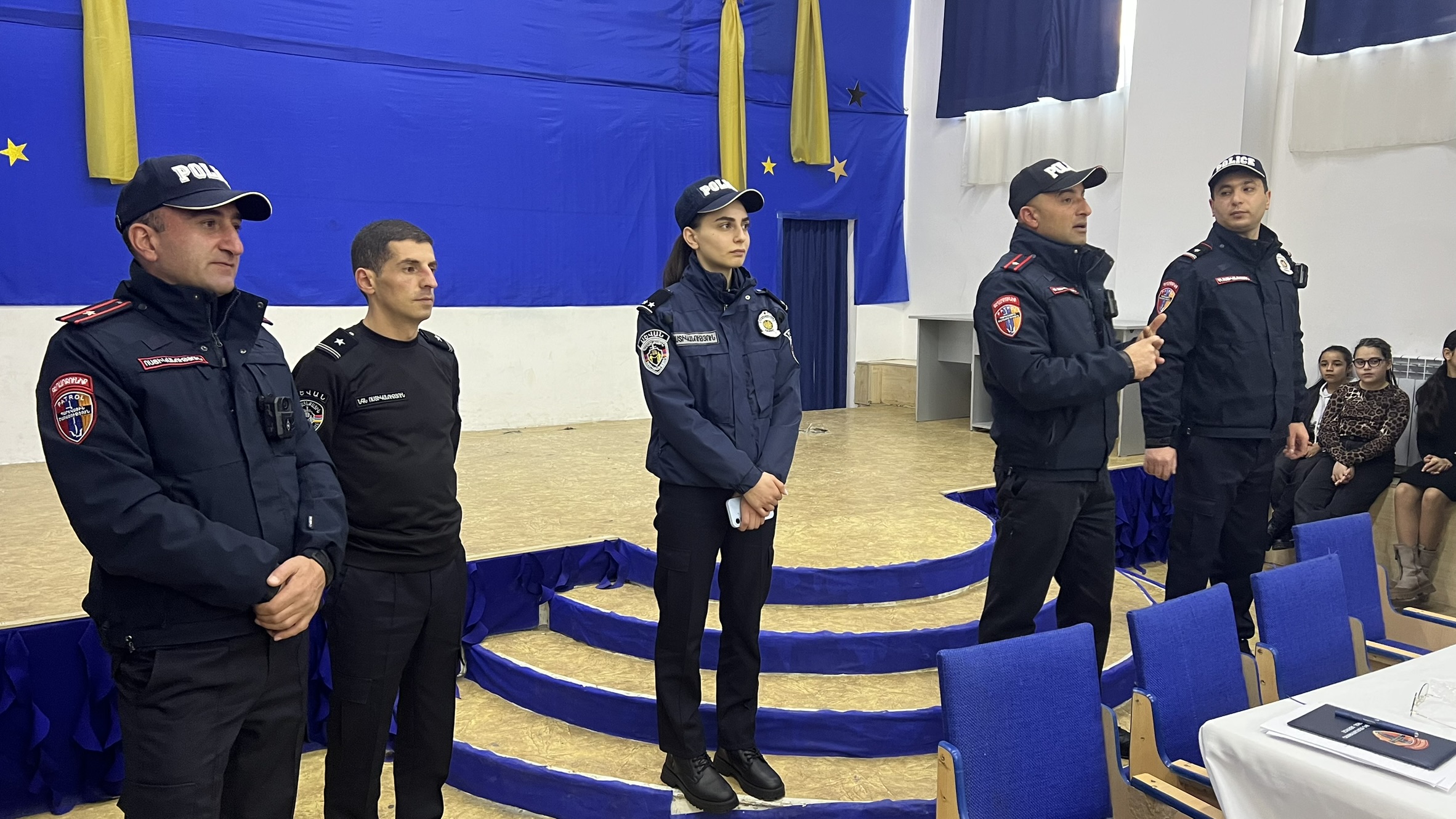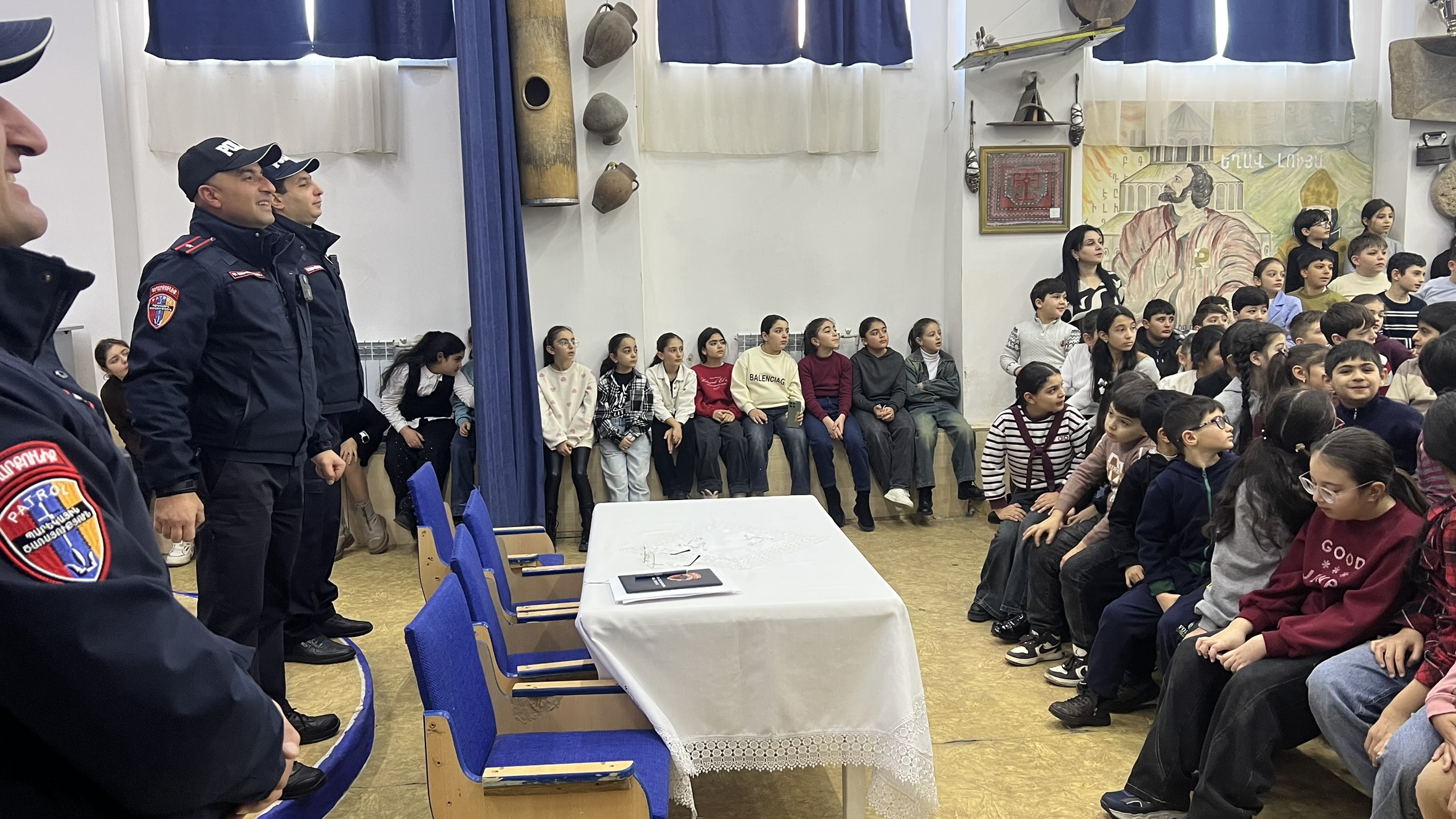 Պարեկները դպրոցականներին ներկայացրել են հասարակական կարգի պահպանման և ճանապարհային անվտանգ երթևեկության կանոնները։