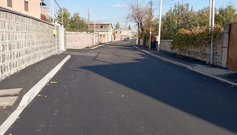 Իրականացվել են հողային աշխատանքներ, որին հաջորդել են ճանապարհային պատվածքի, ուղիների և մուտքերի, մայթերի կառուցումը, դիտահորերի կափարիչների և եզրաքարերի վերատեղադրումը, տեղային լուծումներով ջրահեռացման համակարգի կառուցումը և այլ շինաշխատանքներ:
